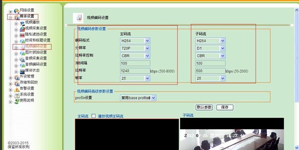 左侧点击媒体设置---视频编码设置。如下图所示: