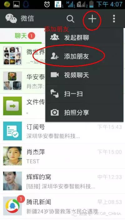 第一步:点击屏幕上方的“+”号,选择“添加朋友”