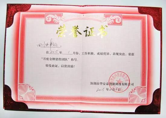 热烈祝贺华安泰驻四川办事处荣获“金牌团队”荣誉 以资鼓励